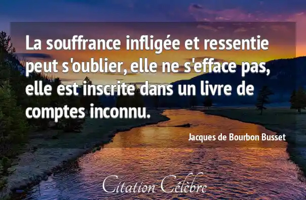 La souffrance infligée et ressentie peut s'oublier, elle ne s'efface pas, elle est inscrite dans un livre de comptes inconnu.