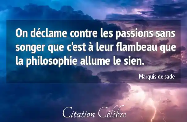 On déclame contre les passions sans songer que c'est à leur flambeau que la philosophie allume le sien.