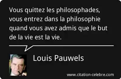 Vous quittez les philosophades, vous entrez dans la philosophie quand vous avez admis que le but de la vie est la vie.
