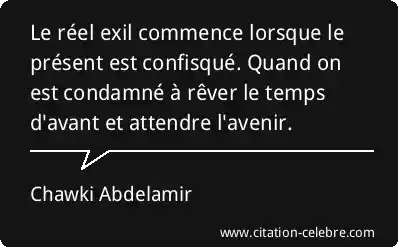 Le réel exil commence lorsque le présent est confisqué. Quand on est condamné à rêver le temps d'avant et attendre l'avenir.