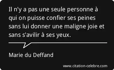 Il n'y a pas une seule personne à qui on puisse confier ses peines sans lui donner une maligne joie et sans s'avilir à ses yeux.
