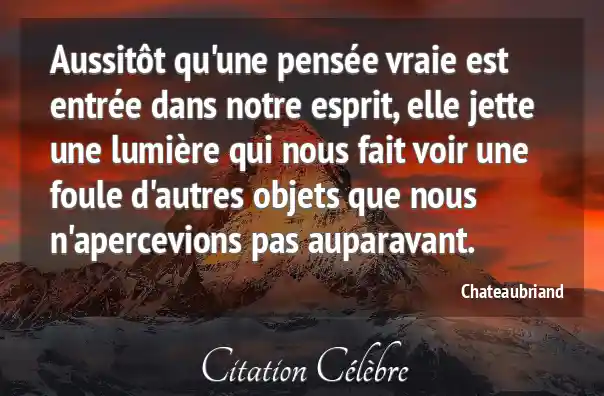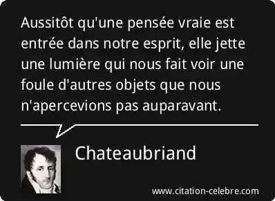 Aussitôt qu'une pensée vraie est entrée dans notre esprit, elle jette une lumière qui nous fait voir une foule d'autres objets que nous n'apercevions pas auparavant.