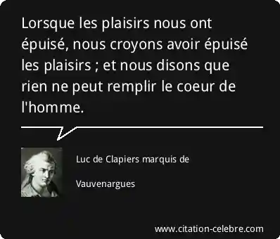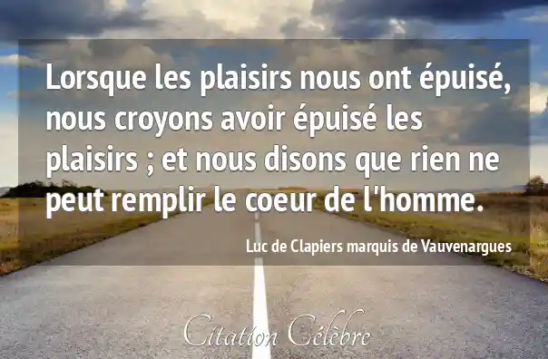 Lorsque les plaisirs nous ont épuisé, nous croyons avoir épuisé les plaisirs ; et nous disons que rien ne peut remplir le coeur de l'homme.