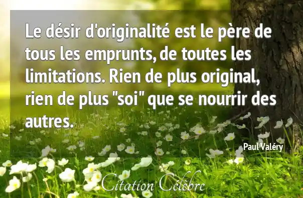 Le désir d'originalité est le père de tous les emprunts, de toutes les limitations. Rien de plus original, rien de plus "soi" que se nourrir des autres.