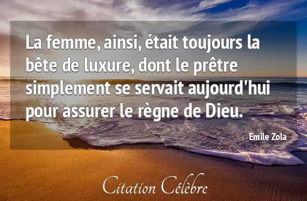 La femme, ainsi, était toujours la bête de luxure, dont le prêtre simplement se servait aujourd'hui pour assurer le règne de Dieu.