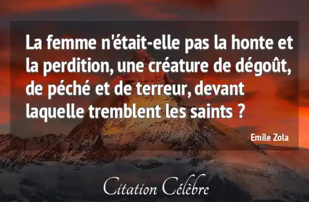 La femme n'était-elle pas la honte et la perdition, une créature de dégoût, de péché et de terreur, devant laquelle tremblent les saints ?