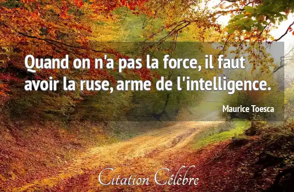 Quand on n'a pas la force, il faut avoir la ruse, arme de l'intelligence.