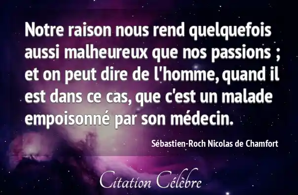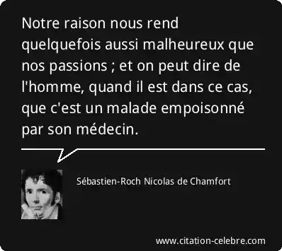 Notre raison nous rend quelquefois aussi malheureux que nos passions ; et on peut dire de l'homme, quand il est dans ce cas, que c'est un malade empoisonné par son médecin.