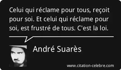 Celui qui réclame pour tous, reçoit pour soi. Et celui qui réclame pour soi, est frustré de tous. C'est la loi.