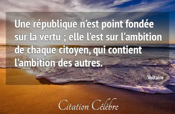 Une république n'est point fondée sur la vertu ; elle l'est sur l'ambition de chaque citoyen, qui contient l'ambition des autres.