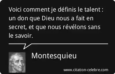 Voici comment je définis le talent : un don que Dieu nous a fait en secret, et que nous révélons sans le savoir.