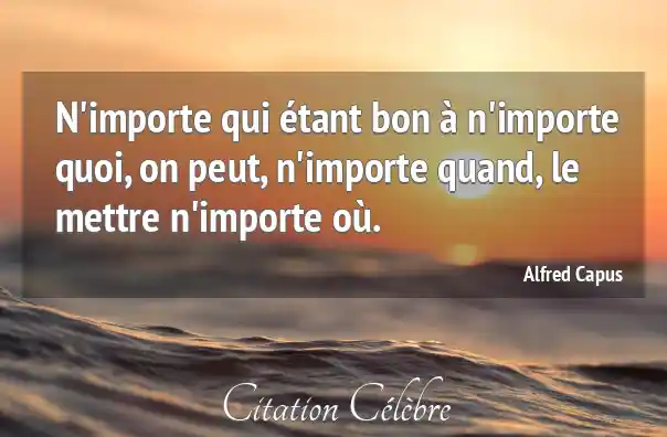 N'importe qui étant bon à n'importe quoi, on peut, n'importe quand, le mettre n'importe où.