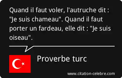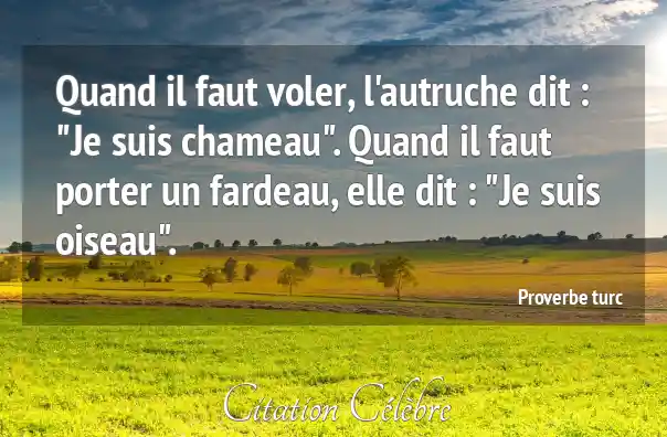 Quand il faut voler, l'autruche dit : "Je suis chameau". Quand il faut porter un fardeau, elle dit : "Je suis oiseau".