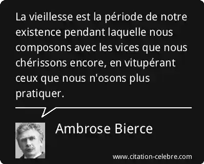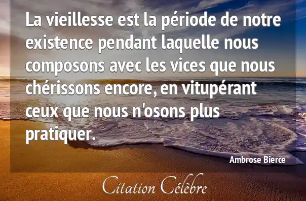 La vieillesse est la période de notre existence pendant laquelle nous composons avec les vices que nous chérissons encore, en vitupérant ceux que nous n'osons plus pratiquer.