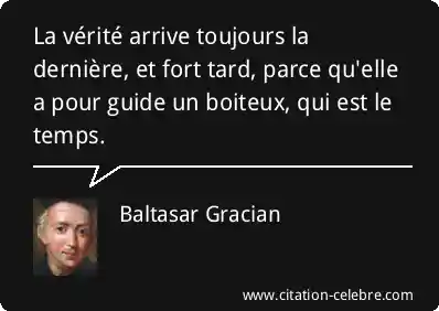 La vérité arrive toujours la dernière, et fort tard, parce qu'elle a pour guide un boiteux, qui est le temps.