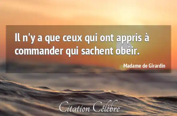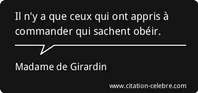 Il n'y a que ceux qui ont appris à commander qui sachent obéir.