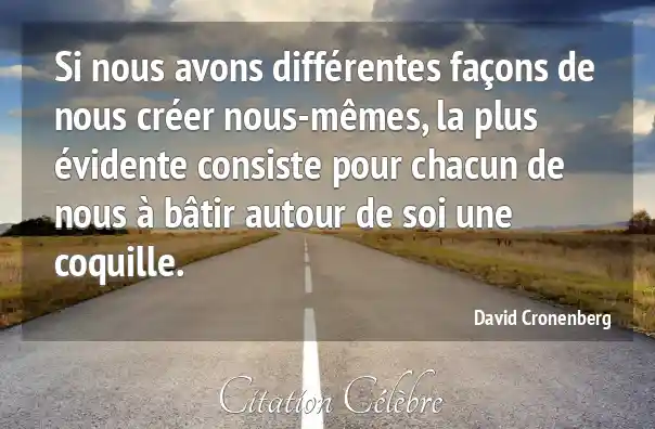 Si nous avons différentes façons de nous créer nous-mêmes, la plus évidente consiste pour chacun de nous à bâtir autour de soi une coquille.