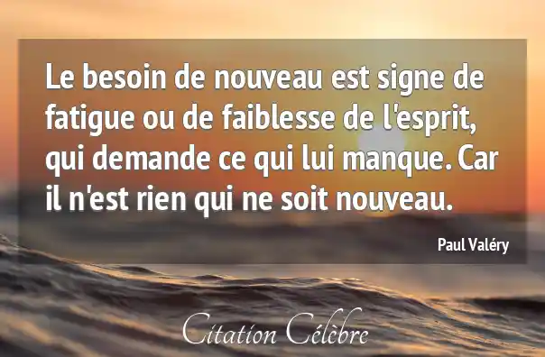 Le besoin de nouveau est signe de fatigue ou de faiblesse de l'esprit, qui demande ce qui lui manque. Car il n'est rien qui ne soit nouveau.