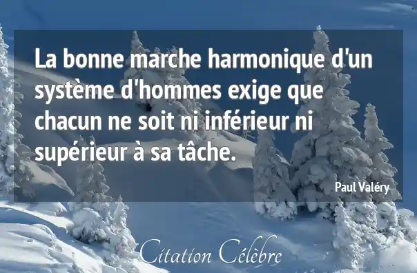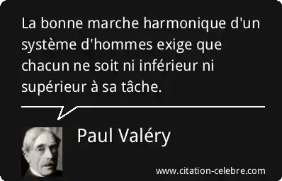 La bonne marche harmonique d'un système d'hommes exige que chacun ne soit ni inférieur ni supérieur à sa tâche.