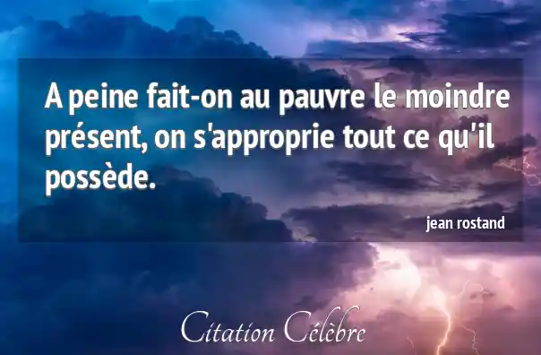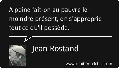 Citation Jean Rostand peine : A peine fait-on au pauvre le moindre présent, on s'approprie...