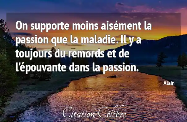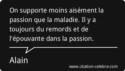 On supporte moins aisément la passion que la maladie. Il y a toujours du remords et de l'épouvante dans la passion.