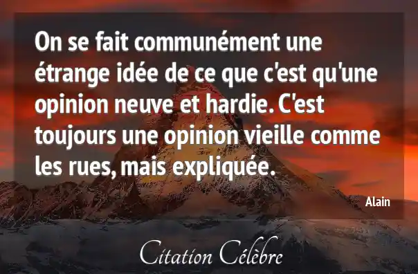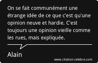 On se fait communément une étrange idée de ce que c'est qu'une opinion neuve et hardie. C'est toujours une opinion vieille comme les rues, mais expliquée.