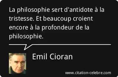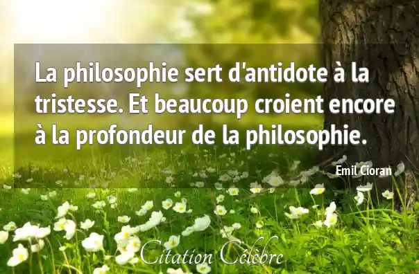 La philosophie sert d'antidote à la tristesse. Et beaucoup croient encore à la profondeur de la philosophie.