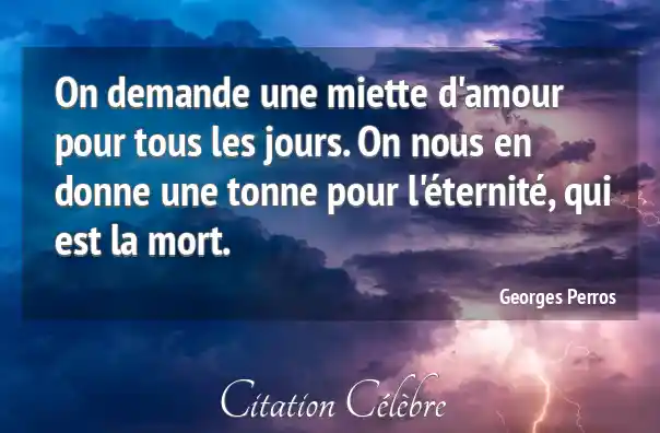 On demande une miette d'amour pour tous les jours. On nous en donne une tonne pour l'éternité, qui est la mort.