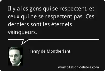 Il y a les gens qui se respectent, et ceux qui ne se respectent pas. Ces derniers sont les éternels vainqueurs.