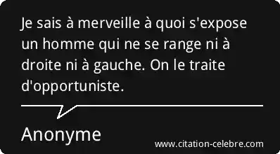 Je sais à merveille à quoi s'expose un homme qui ne se range ni à droite ni à gauche. On le traite d'opportuniste.