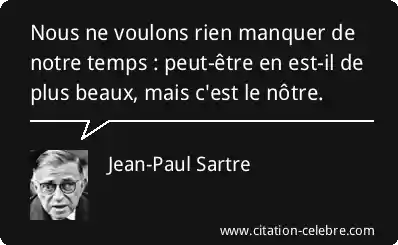 Nous ne voulons rien manquer de notre temps : peut-être en est-il de plus beaux, mais c'est le nôtre.