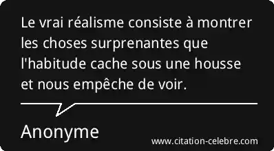 Le vrai réalisme consiste à montrer les choses surprenantes que l'habitude cache sous une housse et nous empêche de voir.
