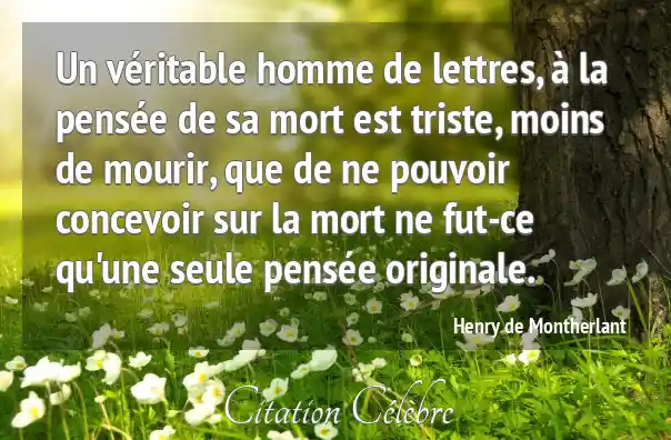 Un véritable homme de lettres, à la pensée de sa mort est triste, moins de mourir, que de ne pouvoir concevoir sur la mort ne fut-ce qu'une seule pensée originale.