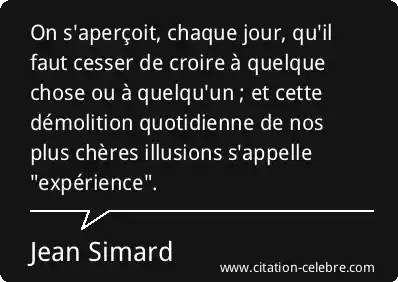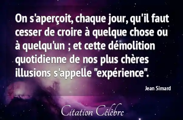 On s'aperçoit, chaque jour, qu'il faut cesser de croire à quelque chose ou à quelqu'un ; et cette démolition quotidienne de nos plus chères illusions s'appelle "expérience".