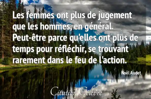 Les femmes ont plus de jugement que les hommes, en général. Peut-être parce qu'elles ont plus de temps pour réfléchir, se trouvant rarement dans le feu de l'action.