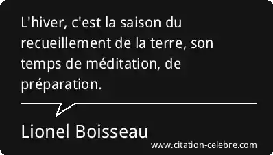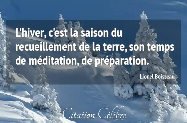L'hiver, c'est la saison du recueillement de la terre, son temps de méditation, de préparation.
