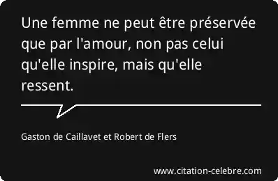 Une femme ne peut être préservée que par l'amour, non pas celui qu'elle inspire, mais qu'elle ressent.