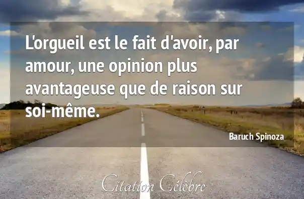 L'orgueil est le fait d'avoir, par amour, une opinion plus avantageuse que de raison sur soi-même.