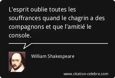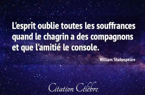 L'esprit oublie toutes les souffrances quand le chagrin a des compagnons et que l'amitié le console.