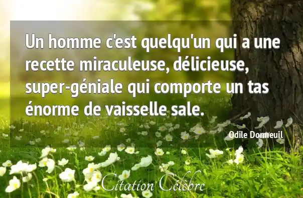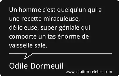 Un homme c'est quelqu'un qui a une recette miraculeuse, délicieuse, super-géniale qui comporte un tas énorme de vaisselle sale.
