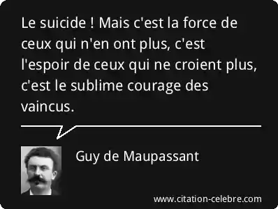 Le suicide ! Mais c'est la force de ceux qui n'en ont plus, c'est l'espoir de ceux qui ne croient plus, c'est le sublime courage des vaincus.