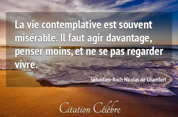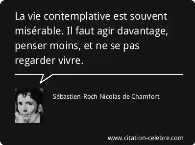 La vie contemplative est souvent misérable. Il faut agir davantage, penser moins, et ne se pas regarder vivre.