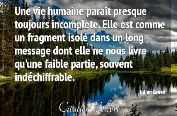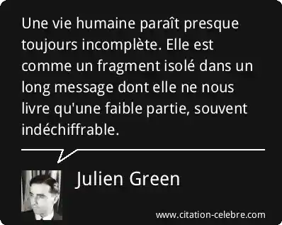 Une vie humaine paraît presque toujours incomplète. Elle est comme un fragment isolé dans un long message dont elle ne nous livre qu'une faible partie, souvent indéchiffrable.