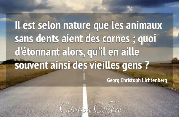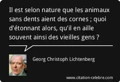 Il est selon nature que les animaux sans dents aient des cornes ; quoi d'étonnant alors, qu'il en aille souvent ainsi des vieilles gens ?