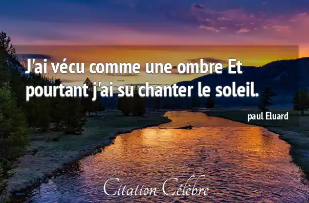 J'ai vécu comme une ombre Et pourtant j'ai su chanter le soleil.