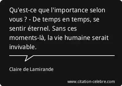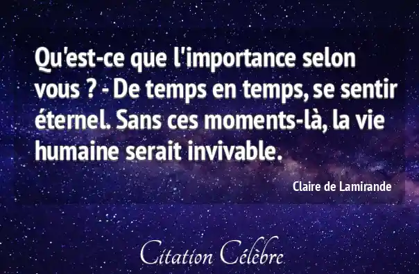 Qu'est-ce que l'importance selon vous ? - De temps en temps, se sentir éternel. Sans ces moments-là, la vie humaine serait invivable.