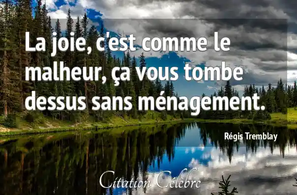 La joie, c'est comme le malheur, ça vous tombe dessus sans ménagement.