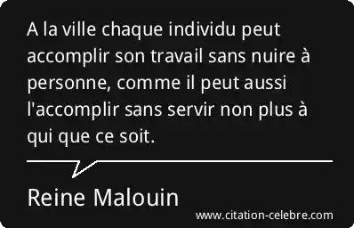 A la ville chaque individu peut accomplir son travail sans nuire à personne, comme il peut aussi l'accomplir sans servir non plus à qui que ce soit.