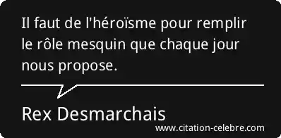 Citation Rex Desmarchais jour : Il faut de l'héroïsme pour remplir le rôle mesquin que...