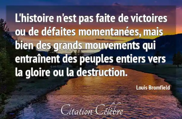 L'histoire n'est pas faite de victoires ou de défaites momentanées, mais bien des grands mouvements qui entraînent des peuples entiers vers la gloire ou la destruction.